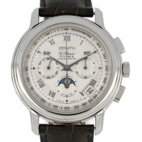 Mondphasenanzeige, Mother of pearl dial, Jahreskalender, Stahl, Automatikaufzug, Durchmesser 37 mm, Jahr 2011, Schachtel Zenith, Garantie von Brandizzi 12 Monate